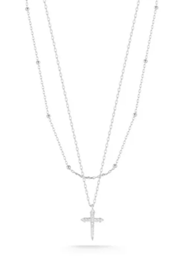 Silver Plated Cubic Zirconia & Plain Cross Layered Necklace