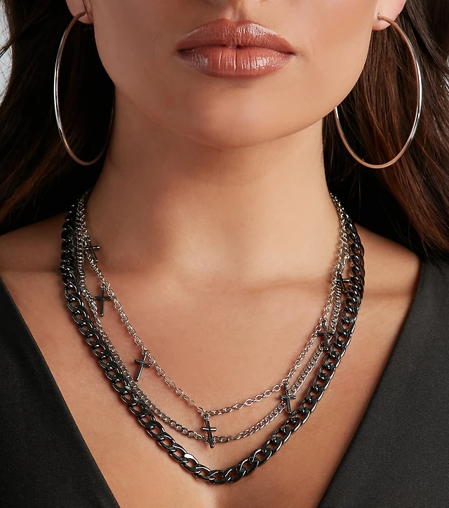 Cross Pendant Tiered Necklace