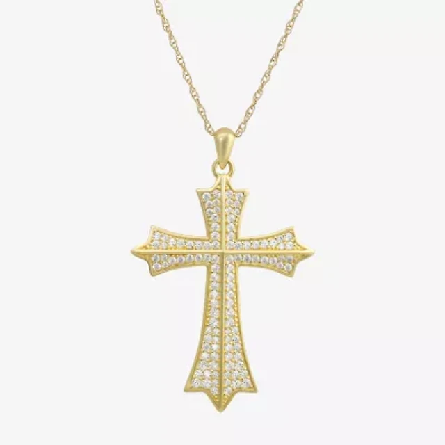 Womens White Diamond Accent Personalized Gold Cross Pendant Necklace