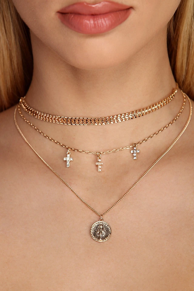 Gold Cubic Zirconia Cross & Chain Layered Necklace