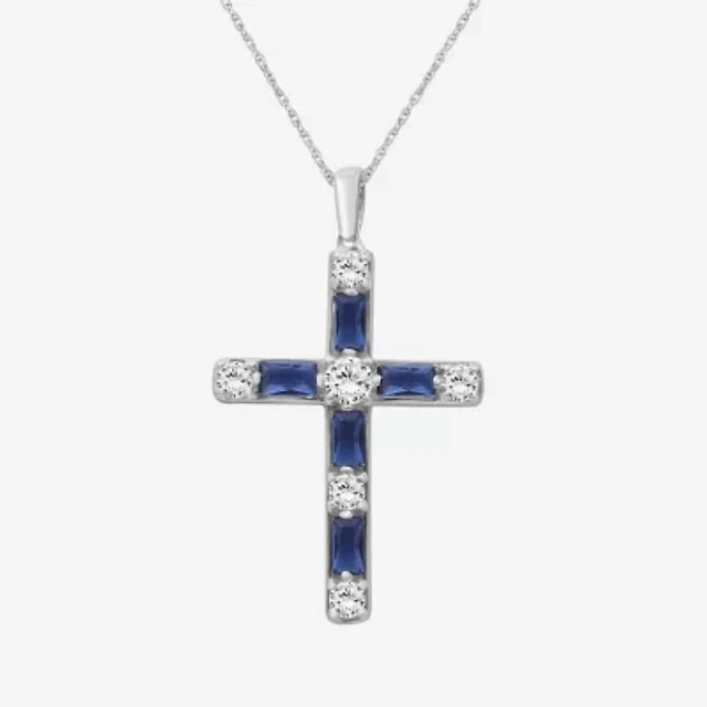 Womens Diamond Accent Lab Created Gemstone 10K White Gold Cross Pendant Necklace