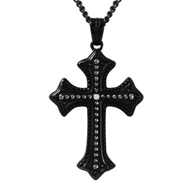 Mens 1/6 CT. T.W. Diamond Black Stainless Steel Cross Pendant Necklace