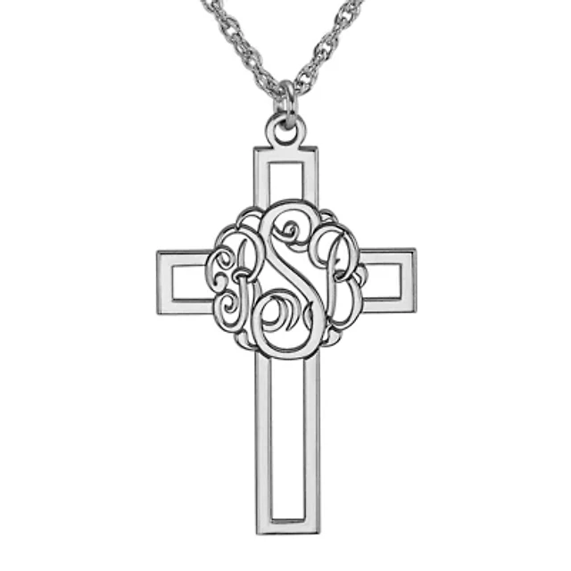 Personalized Womens Sterling Silver Cross Name Pendant Necklace