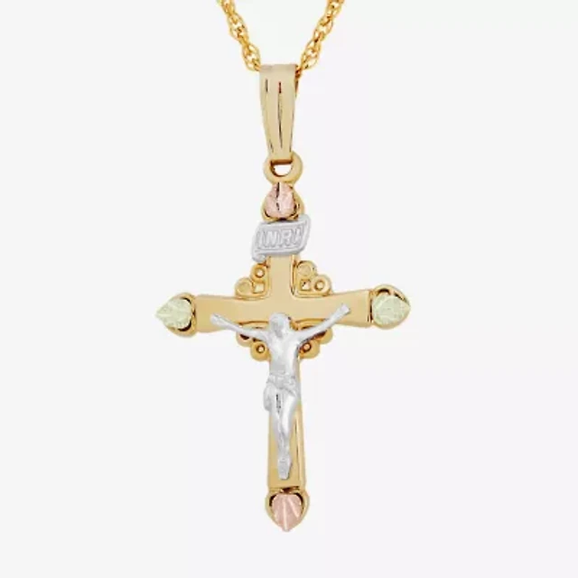 10K Gold CZ Diamond Cut Crucifix Cross Two-Tone Necklace Charm