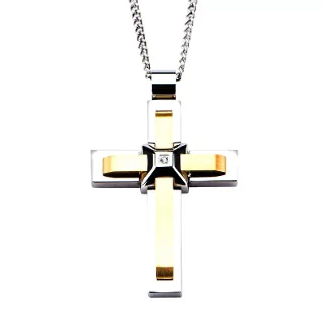 Mens Diamond Accent Natural Diamond Stainless Steel Cross 24 Inch Pendant Necklace