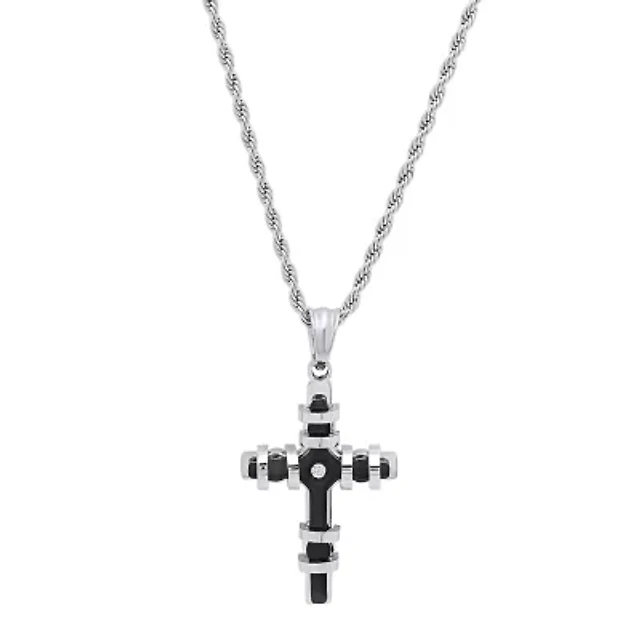 Mens 1/2 CT. T.W. Black Diamond Stainless Steel Cross 24 Inch Pendant Necklace