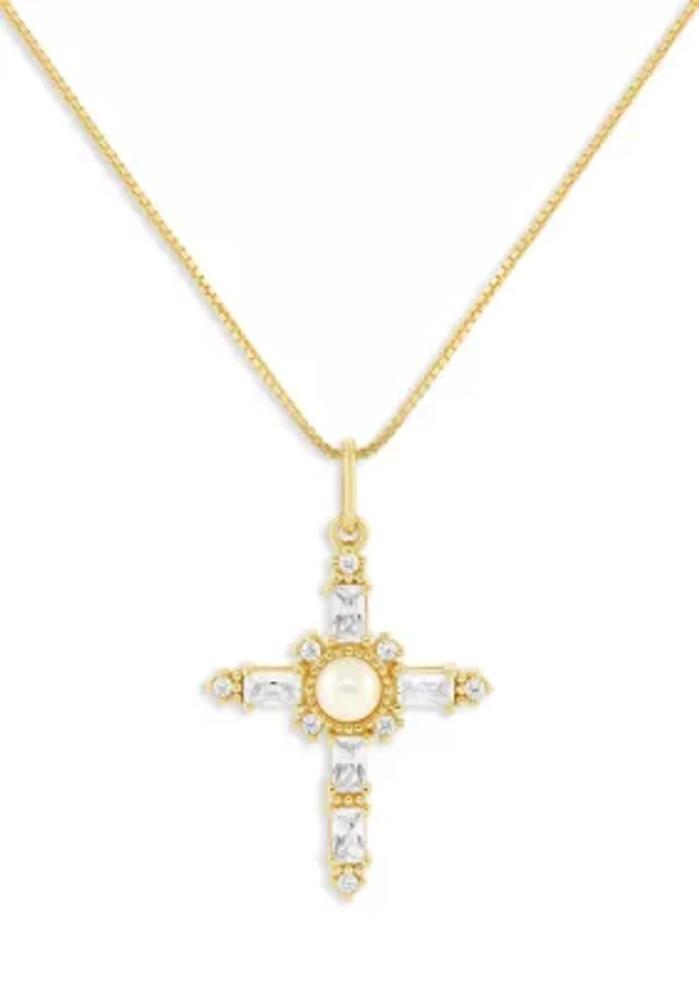 Lab Created Gold Tone Cross Pendant with Round CZ stones Necklace