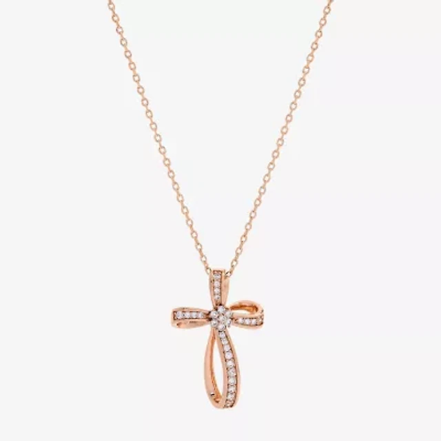 Footnotes Freeform Womens 14K Gold Over Silver 14K Rose Gold Over Silver Cross 16 Inch Pendant Necklace