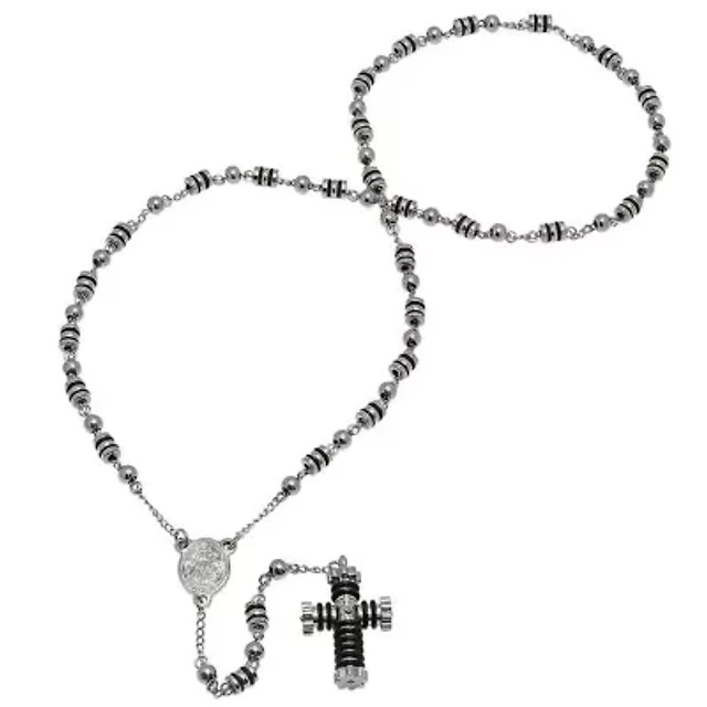 Steeltime Mens Stainless Steel Hypoallergenic 19 Inch Rosary Necklace