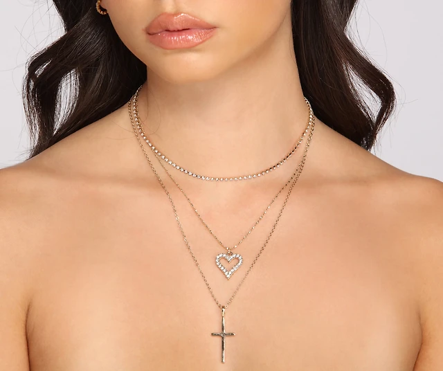 Heart And Charm Layered Necklace Set