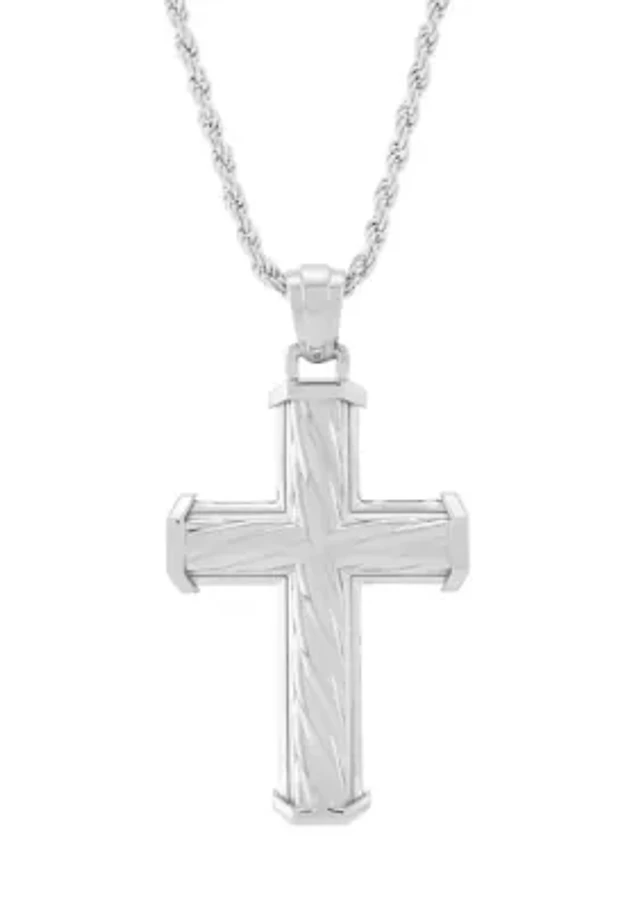 1/10 ct. t.w. Cubic Zirconia Stainless Steel Cross Pendant with 24 Inch Round BIP Chain