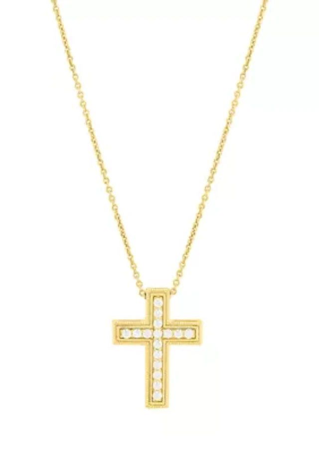 1/4 ct. t.w. Lab Grown Diamond Cross Pendant with 18'' Cable Chain in Gold over Sterling Silver