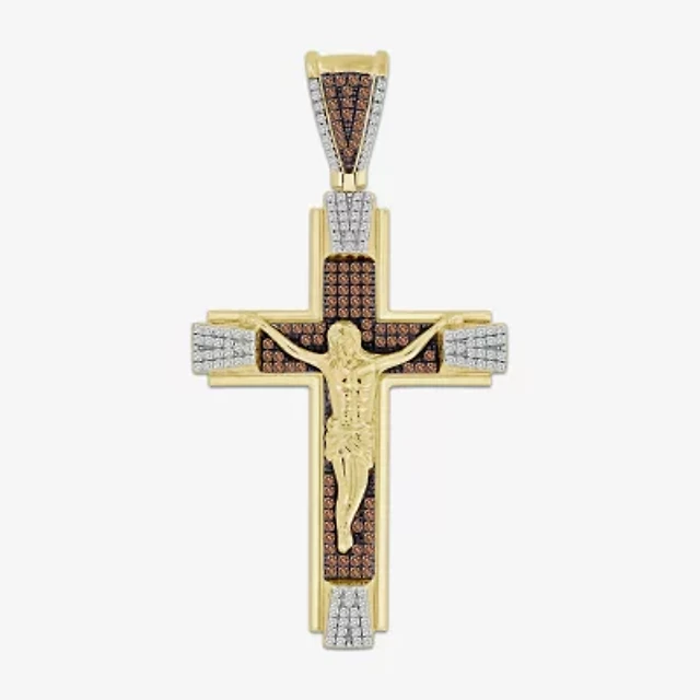 Mens 1/2 CT. T.W. Natural Black Diamond 14K Gold Over Silver Cross Pendant