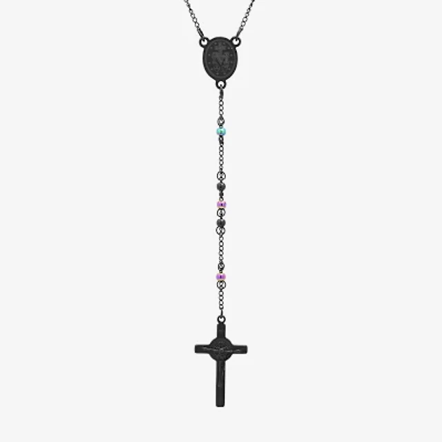 Steeltime Black Ion Plated Mens Stainless Steel Hypoallergenic 26 Inch Rosary Necklace