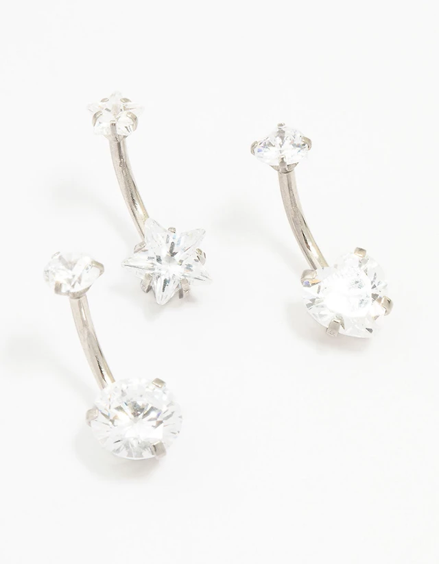 Solid Stainless Steel Crystal Frame Belly Button Ring - 14G