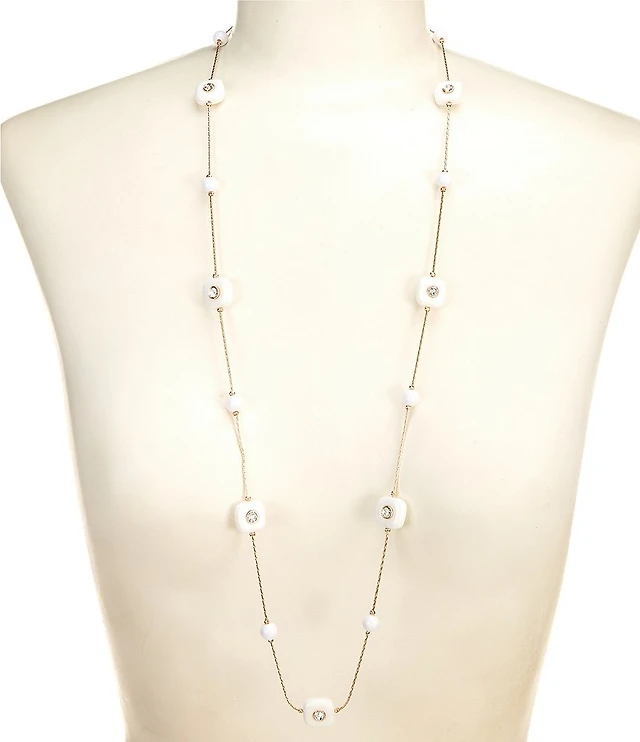 Crystal Stone Y-neck Gold Tone Toggle Necklace