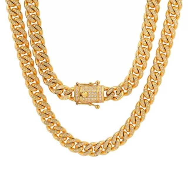 Men's stainless steel and simulated diamonds cuban link necklace