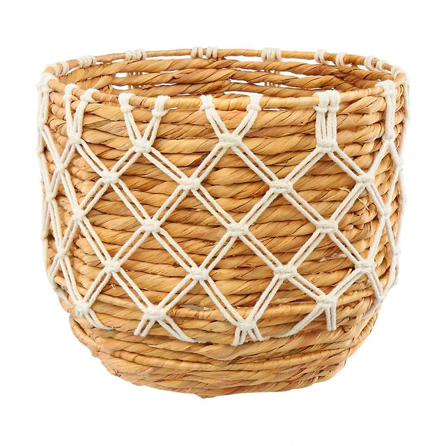 Round Cotton and Jute Braided and Wrapped Basket with Handles, Natural and White