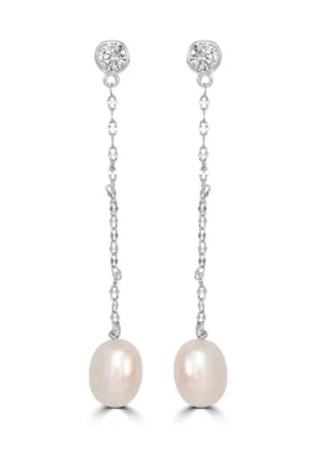 8mm Cubic Zirconia Dangle Drop Earrings in 10K Gold