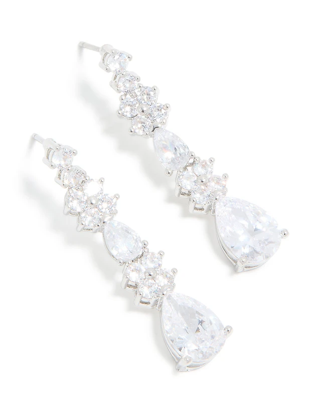 Cubic Zirconia Heart Drop Earrings in 14K White Gold