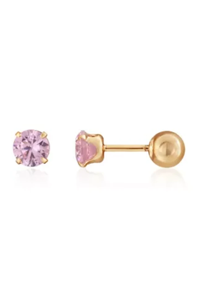 Kids Cubic Zirconia Stud Earrings in 14K Yellow Gold