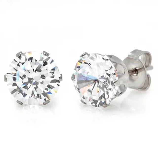 Cubic Zirconia Stainless Steel 8mm Stud Earrings