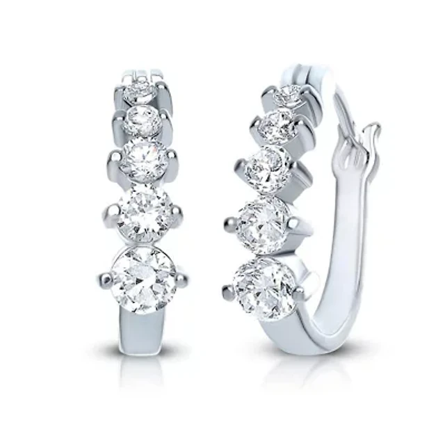 Cubic Zirconia Station Huggie Hoop Earrings in Sterling Silver