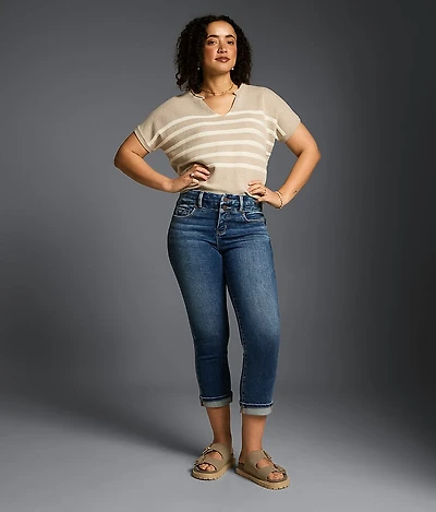Curvy Mid-Rise Cuffed Stretch Capri Jean