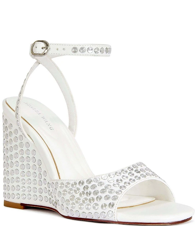 Azalea Wang Matteus Denim Ankle Strap Studded Wedge Sandals