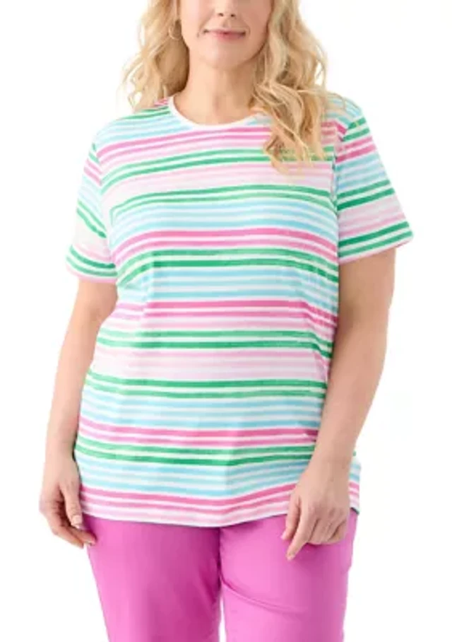 Stripe Perfect Ribbed Elbow Sleeve Tee