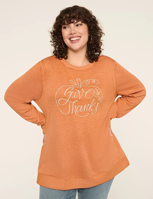 LIVI French Terry Heart Print Crew-Neck Sweatshirt