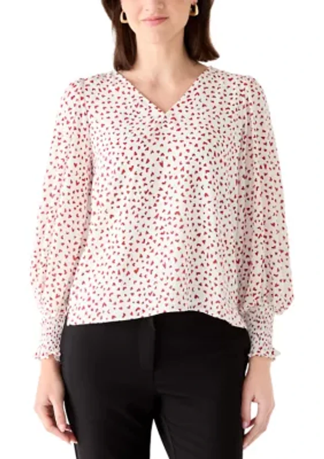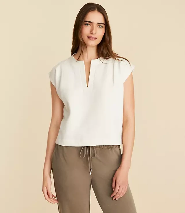 Petite Pleated Split Neck Blouse