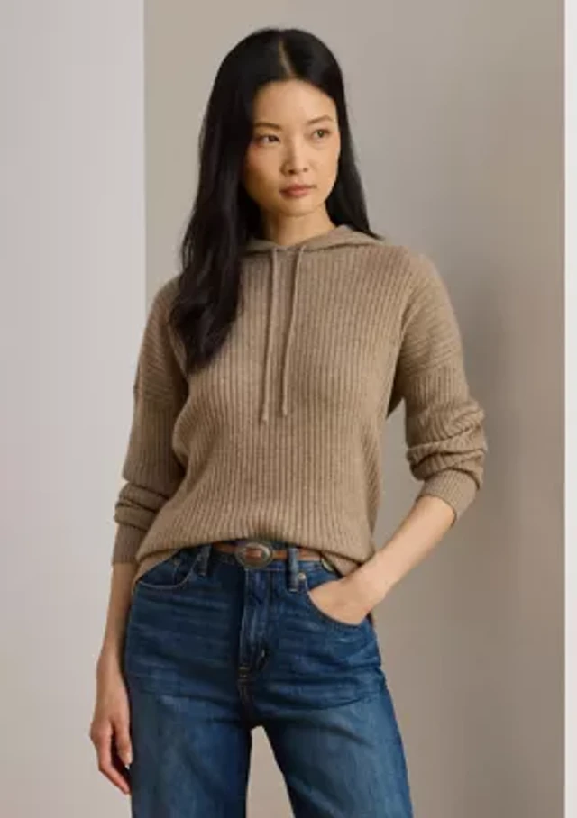 Women's Rib-Knit Cashmere Sweater Hoodie