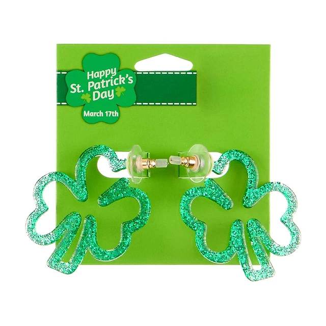 Happy St. Patrick's Day Green Glitter Shamrock Earring
