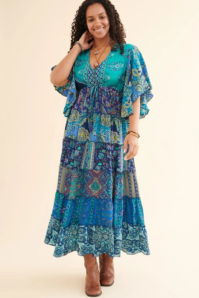 Buy Mustard Mandala Sari Bell Sleeve Mini Dress Online at Earthbound Trading