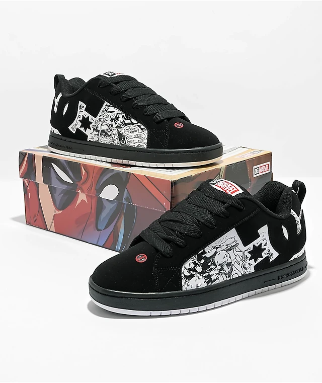 DC x Deadpool Pure Black, White & Red Skate Shoes