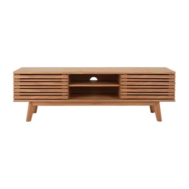 Walker Edison 58" Teak Bookmatch & White Mid Century Modern TV Buffet