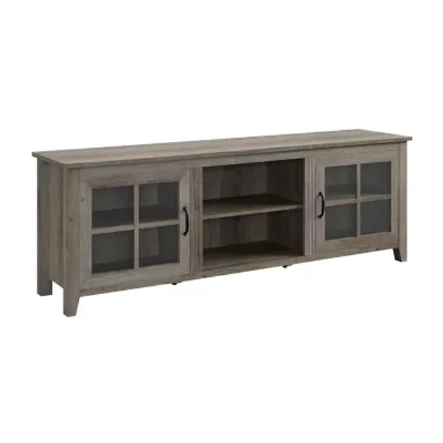 70" Farmhouse Simple Window Pane 2 Door Wood TV Stand