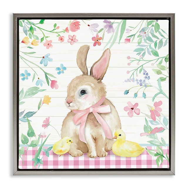 Stupell Industries Spring Bunny Floral Daffodils Floater Framed Art
