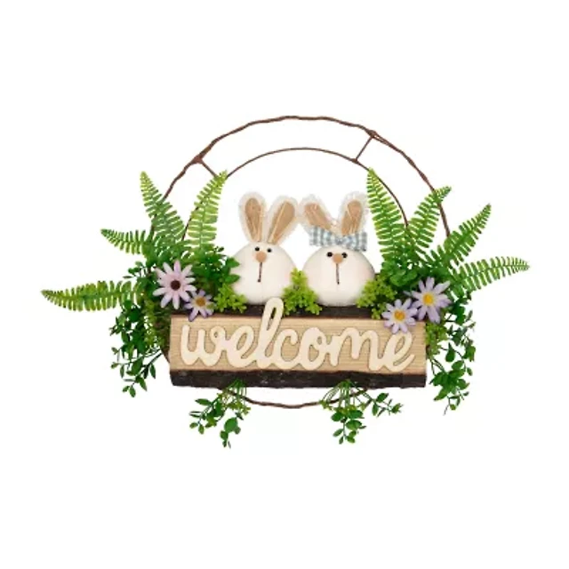 Northlight 16" Rabbit Couple Floral Welcome Hanging Decor