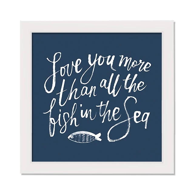 Love You More than All the Fish White Framed Nautical Wall Décor