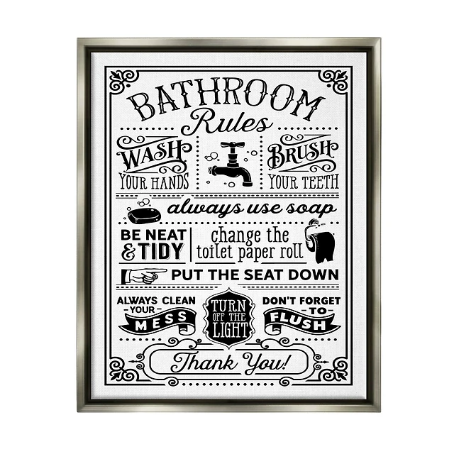 Stupell Industries Vintage Style Bathroom Rules Diagram List Border Floater Framed Art