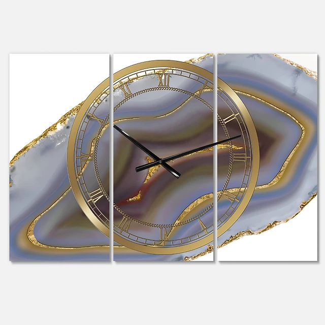 Designart Marble Gold & Black II Modern 3 Panel Wall Clock