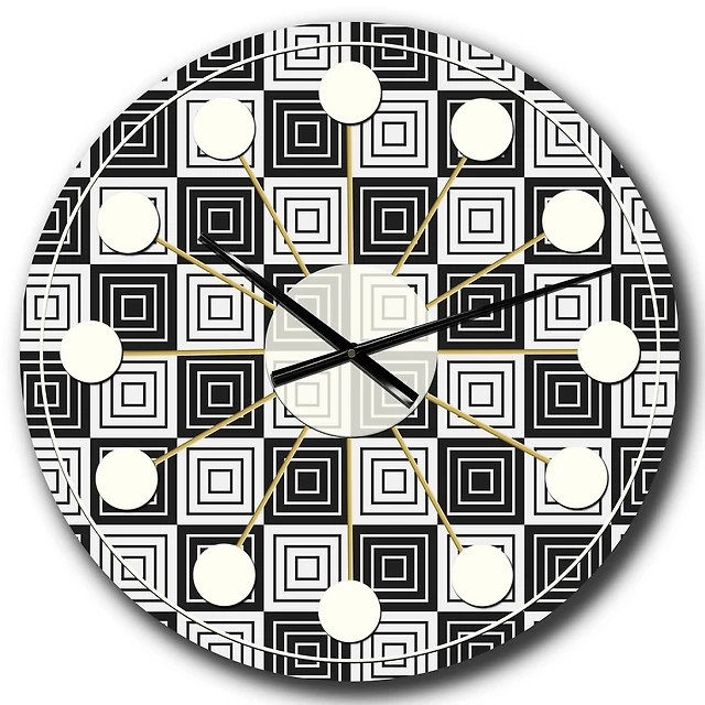 Designart 'Monochrome Geometric Pattern Xi Mid-Century Modern Wall Clock