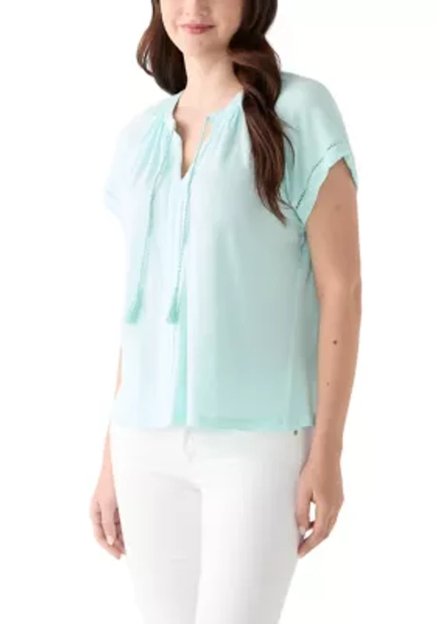 IRO Linen Knit V-Neck Short Sleeve Tee Shirt