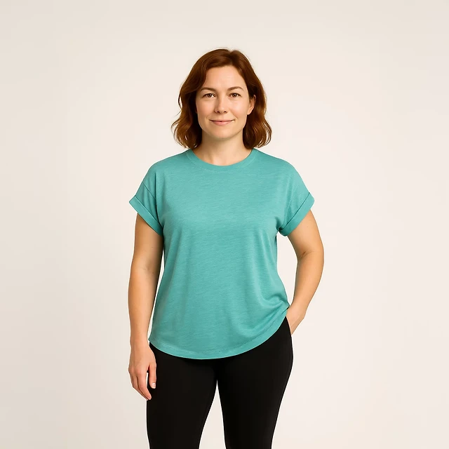 Essential Fitted Ribbed Mock Neck Elbow Sleeve Tee