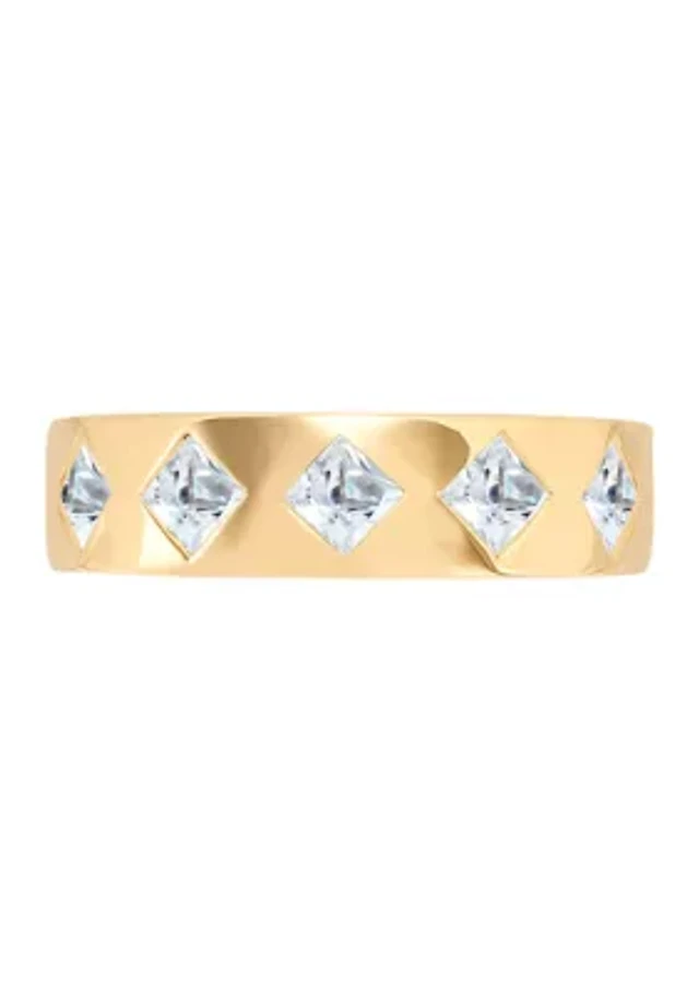 Silver Treasures Womens Cubic Zirconia 14K Gold Over Round Delicate Band