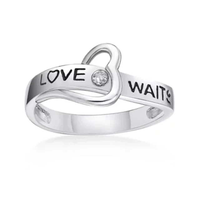 Diamond Accent Heart and Cross Bypass Purity Ring Sterling Silver