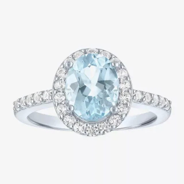 Gemstone Sterling Silver Oval Halo Side Stone Cocktail Ring