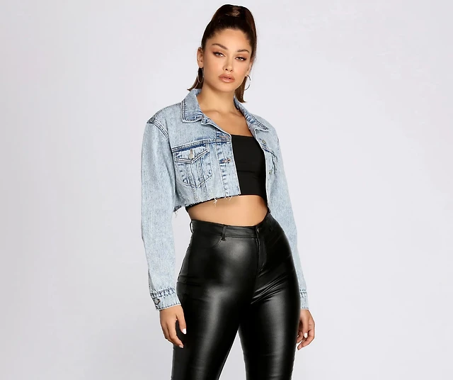 Throw It Back Acid Wash Cropped Denim Jacket
